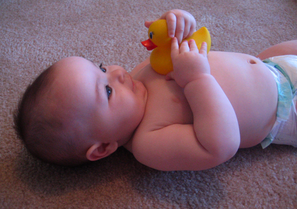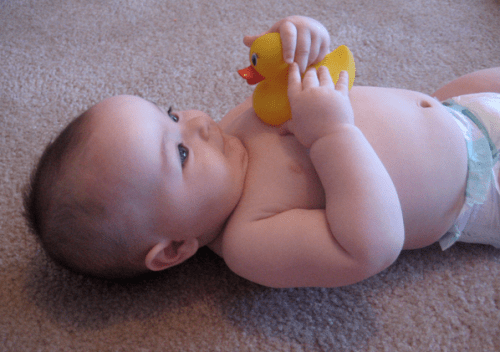 Currently, her favorite toy is Duckie. Just one glance at it and she gets the biggest smile on her face. Eliana also loves fruits and veggies, though she absolutely detests apples. She loves roasted butternut squash, pears/pineapple, blackberries, mangoes and sweet potatoes. But she will NOT eat apples.