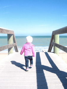 The weather in Vero Beach was stunning. 60’s and sunny. Quite a relief from the frigid winter we’ve had in Raleigh. Despite the chilly winds, we took Eliana to the boardwalk to run to heart’s content and see the ocean. She had a blast!