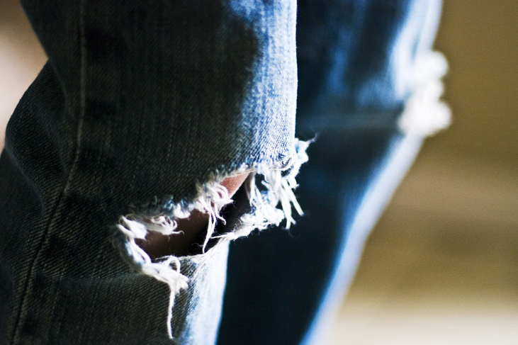 ImageThey fray quickly now.  Within weeks deep denim hues begin to fade towards white.  This quick progression from new to used marks every pair of jeans I own, a pattern which began four years ago when I found myself knees-to-floor daily.